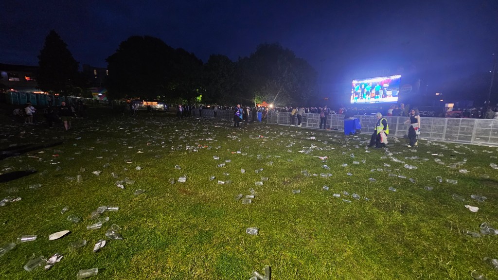Pukul 22.00, 15 menit setelah final usai, sebagian besar penonton sudah meninggalkan Devonshire Green. Yang tersisa mungkin tidak sampai 10 orang yang menunggu penyerahan piala dan staf kebersihan. Gelas plastik bir berserakan di mana-mana. Inggris harus menunggu lebih lama lagi untuk bisa memenangkan Euro atau Piala Dunia. []