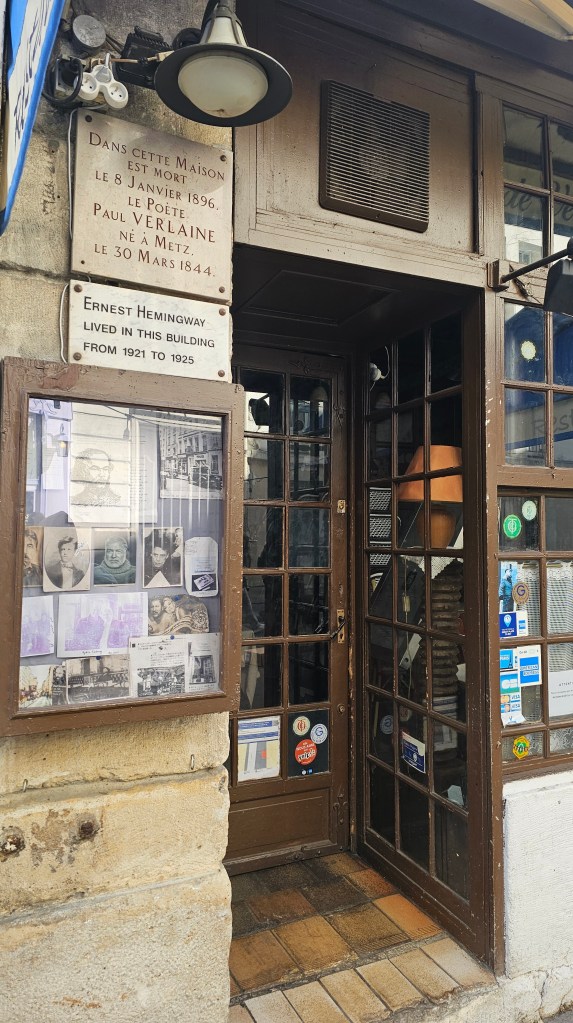 Beberapa langkah kemudian, aku melihat sebuah bangunan dengan plakat bertuliskan: “Ernest Hemingway lived in this building from 1921 to 1925.” Itu di Rue du Cardinal Lemoine. Orang-orang berlalu begitu saja, mungkin tak peduli, atau memang sudah biasa dengan sejarah yang diam di dinding-dinding kota mereka.